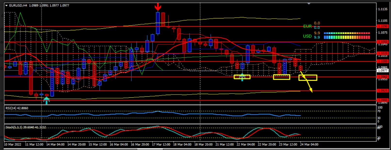 Hoje, eu espero que o par euro/dólar quebre o nível de suporte de 1.0960.