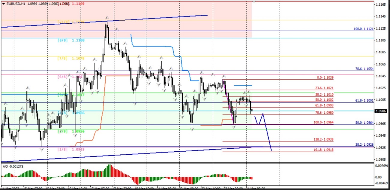 Um profundo movimento descendente é possível, mas o preço precisa quebrar o nível inclinado próximo de 1.0990 e fixar abaixo dele. Neste caso, as cotações terão todas as chances de cair para a área de 1.0900.