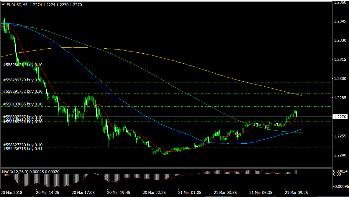 EUR/ USD - Vemos o pico de uma onda em um gráfico de 5 minutos