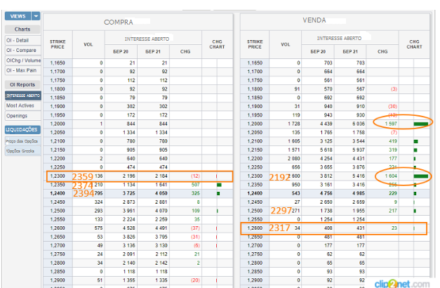 Foi assim que as opções foram negociadas e, apesar do crescimento, as opções de venda foram vendidas como bolos quentes. Além disso, os aumentos na OI são enormes. É muito cedo para dizer sobre o preço 20º de exercício, mas esta é a figura 19º, mas 1230 é o mais desejável, assim como o crescimento de mais de 1.600 contratos, cada um custando 125 mil dólares. O preço à vista é 2.192 e acho que chegaremos lá. Hoje, o crescimento é praticamente limitado a - 2.359 foi quebrado, mas no mercado fino, sem volume e consolidação. Portanto, será necessário verificar novamente e ir para o desejado 2,374. 2,394 é necessário ter em mente (quando a quebra um limite opcional superior, possa chegar a 50p), mas depois de um movimento forte é geralmente excessivo com um plano. Então 2317 é obrigatório e 2297 é como fundo. Há o suficiente e para um dia.