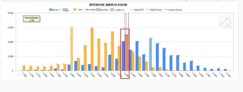 O nível de 1.2300 em futuros atua como um suporte muito poderoso, já que houve o maior volume de opções de venda. Eu não vejo níveis de chamadas fortes. O nível forte mais próximo, que está acima do preço atual, está em 1.2600 em futuros, e o nível de 1.2512 está em forex, levando em consideração o ponto a termo. Outro nível interessante é a dor Max. Hoje, funcionará como uma boa área para abertura de compras. No momento, ele está localizado no nível de 1.2400 em futuros (preço corrigido para forex é 1.2312).