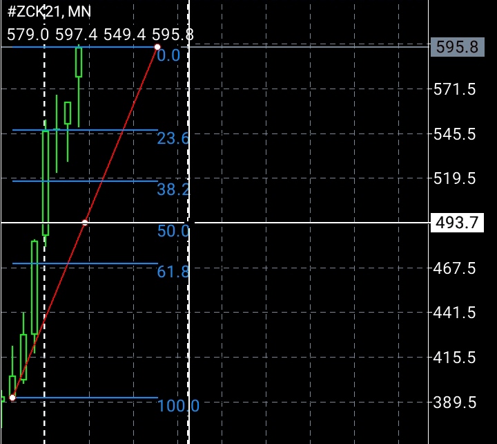 O milho está sobrecomprado! O "Corncoin" como foi chamado o milho devido sua alta valorização nos últimos meses pode reverter. O preço de 5,95, tem suporte imediato em 5,78 antes de buscar novas máximas.