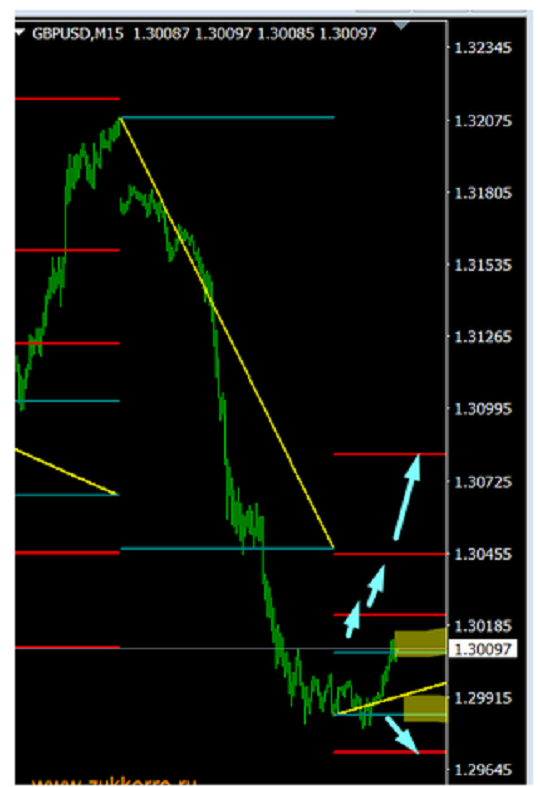 Duas áreas do comprador, 1.3010 - 1.3070 e 1.2975 - 1.3005, não conseguiram resistir e foram quebradas. Isto significa uma mudança de equilíbrio.