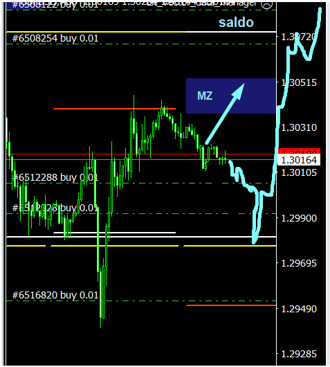 Portanto, vou fechar minhas ofertas de compra se o preço for direto para a zona obrigatória, mas se repetir a manobra de queda de ontem de manhã, vou abrir mais ordens de compra.