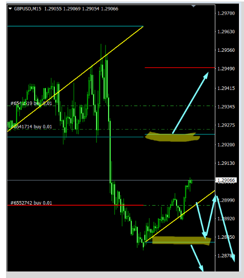 A área da multidão, 1.2940 - 1.30, criou uma zona de ordens de paragem. A área de liquidez. Penso que o par irá descer ao nível de 1,2940 e abaixo, onde se espera que o preço enfrente resistência.