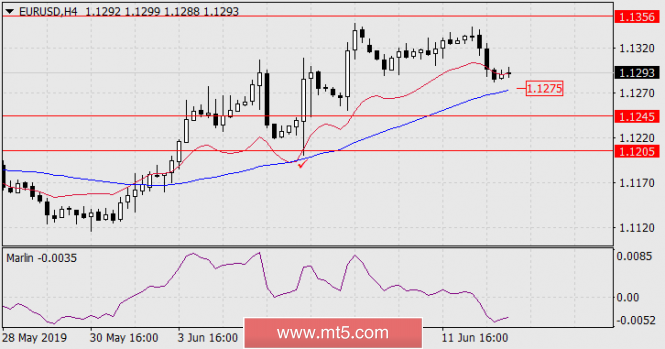EUR/USD No segundo dia após a reunião do Federal Reserve "dovish",ou seja, ontem, os mercados começaram a jogar mais ativamente contra o dólar; o petróleo subiu de preço em 5,14%, o ouro em 2,06% e hoje na sessão asiática acrescenta o mesmo montante. Apesar das claras instruções do Fed para reduzir a taxa uma vez antes do final do ano, os mercados aumentaram suas expectativas de dois cortes, além disso, em julho, com uma probabilidade de 100%. Acontece que valeu a pena para o Fed declarar um possível corte na taxa, uma vez que entrou em colapso com ataques de todos os lados. Isso era impossível antes de Powell. Mas além do FOMC, o Fed ainda tem acionistas. Acreditamos que agora é a hora de intervirem. Na situação atual, o euro está se consolidando na faixa de níveis de Fibonacci de 61,8% -76,4% no gráfico de quatro horas. As indicações do principal indicador Marlin em ambos os gráficos - diariamente e no H4, subindo, o preço tem todas as condições para o crescimento contínuo. O primeiro alvo o é a faixa de 1.1348 / 56, formada pelos níveis de Fibonacci em gráficos de diferentes escalas: 100,0% no H4 e 76,4% no diário.