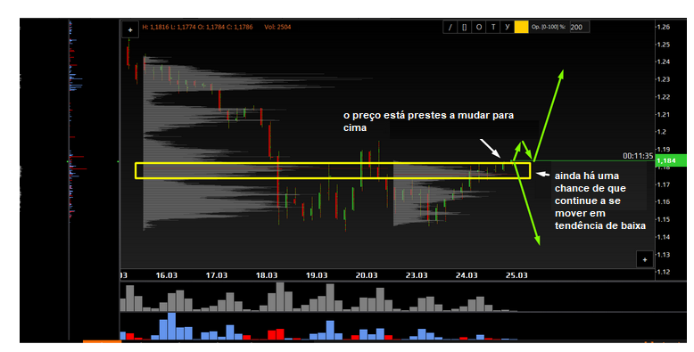 Quanto ao movimento ascendente, o preço precisa de fazer um rebote e romper a linha que serve de obstáculo.