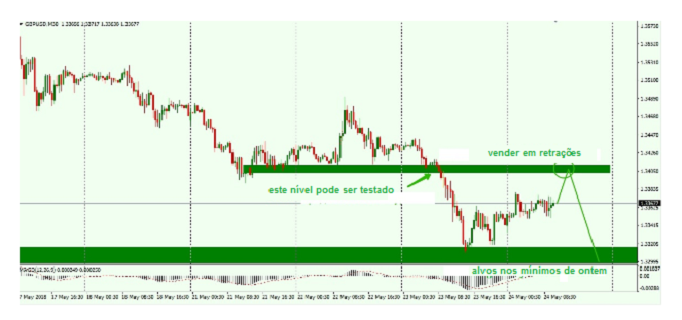 3. Se o segundo stop for acionada, planejarei vender o par na retração para 1,1640 com stop loss em 1,1660 e um nível alvo em 1,1230.