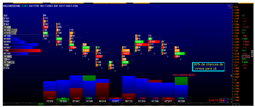 De fato, tivemos o delta semanal máximo na sexta-feira. Foi causada por posições semanais intradia fechadas. E ainda assim o preço não foi acima do nível de 1,22. Temos uma área de vendedor clara de 1.2185 - 1.2200.