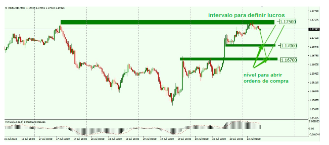 O sinal para compras será uma quebra e consolidação do preço acima de 1,1690. O nível mais próximo para consolidar o lucro é de 1,1730.