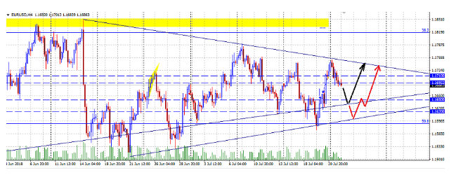 Se assumirmos que na última sexta-feira, o par euro-dólar pulou no discurso de Trump sobre as guerras comerciais e a política monetária da Europa e da China, o resultado positivo da reunião de Trump com Juncker deverá ter o efeito oposto. No entanto, no final da sessão americana, o euro subiu e os asiáticos assumiram a iniciativa.