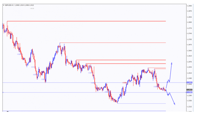 Vamos dar uma olhada no gráfico GBP / USD e considerar alguns cenários possíveis do movimento dos preços.