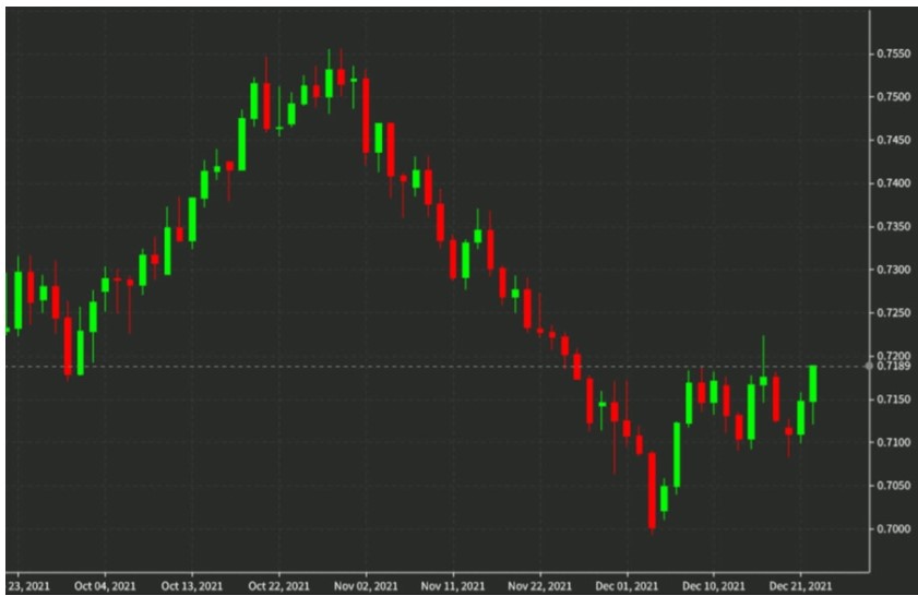 O dólar australiano, visto como um indicador líquido do apetite ao risco, ganhou terreno na terça-feira depois que o Banco Central da Austrália (RBA) expressou confiança de que o surgimento da variante Omicron não iria impedir a recuperação econômica.