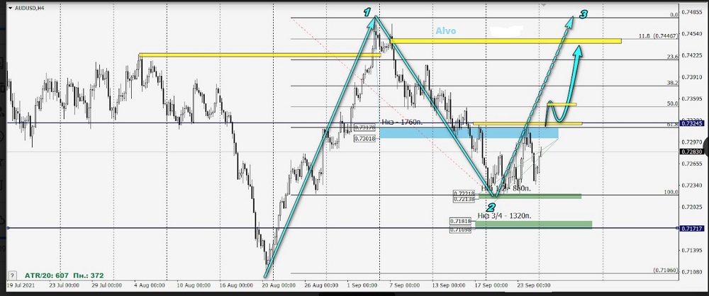 Ela terminará assim que a cotação ultrapassar a sub onda de 0,7320, que é a última onda descendente no período 4H. Uma zona de controle semanal também está localizada lá.