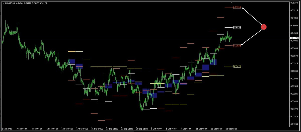 Os níveis de TST mostram a faixa de negociação intradiária. Notavelmente, o preço está sendo negociado entre os limites superior e inferior do intervalo (1). Às vezes, o preço está ultrapassando limites. No entanto, isso raramente acontece. Em geral, uso essa configuração há vários anos.