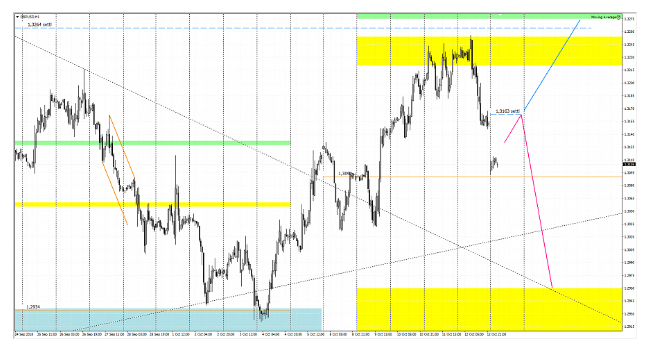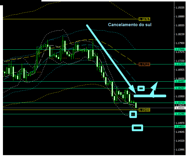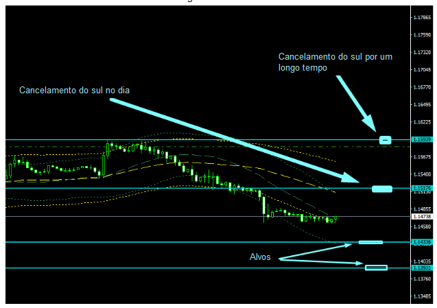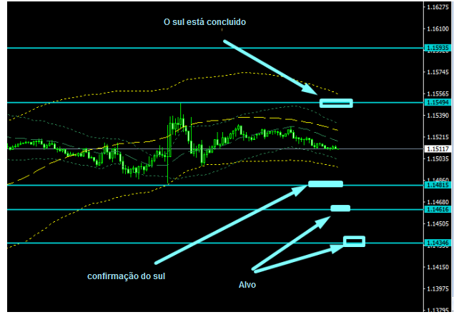 A previsão para hoje. De acordo com M15, o sinal do sul de ontem ainda é relevante hoje, ele vai acabar quando chegarmos ao nível de 1,1520, mas por enquanto o sul está em vigor, e a meta é de 1,1390.