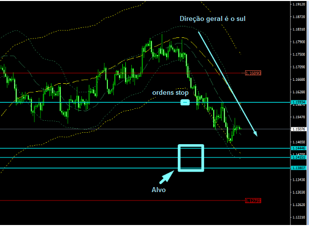 O nível de definição de perda caso ocorra um impulso descendente acentuado deve ser colocado após a quebra de 1,1540.