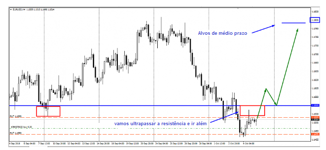 4. O movimento do preço do norte com a sua entrada na zona de resistência de 1,1565 - 1,1580.