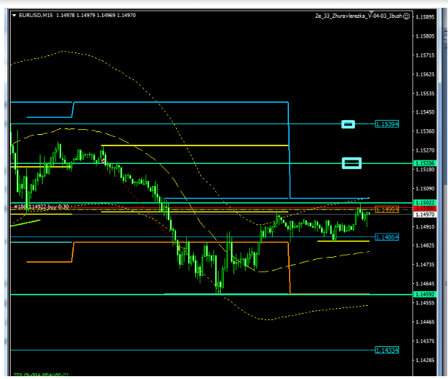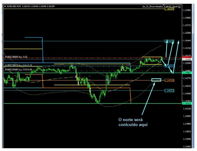Depois que um sinal do norte é dado, eu vou comprar, mas com uma pequena ordem de compra, até 1.1580, bem, então eu não sei se seremos capazes de romper 1.1590, mas por enquanto eu estou esperando por um impulso para o sul, tudo está pronto para isto em M15, então eu espero um sinal do norte.