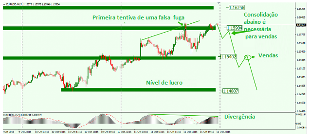 Se o atual declínio continuar, a melhor opção para vendas será uma quebra e uma consolidação de preços abaixo de 1.1570. Esta opção já foi criada no mercado, as condições foram cumpridas, por isso abri a venda.