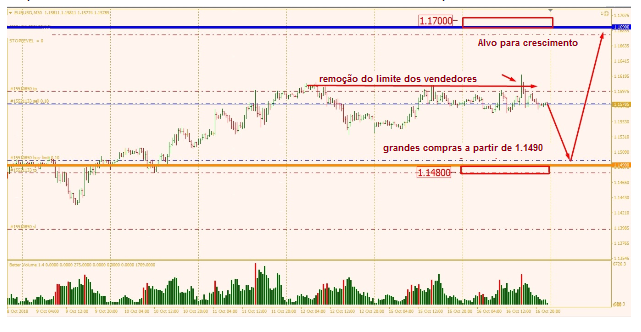 E a tendência mudou na direção oposta. Em 1.1550, as ordens de compra dominavam, o que naturalmente afetava o preço.