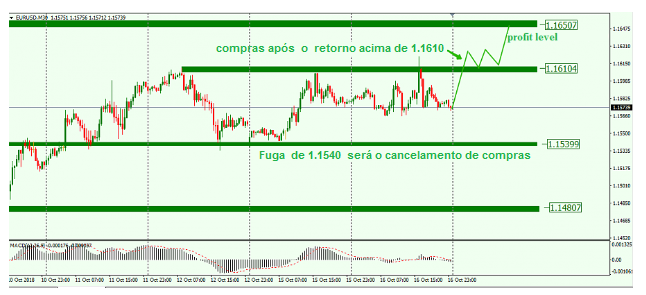 Se considerarmos as opções com uma compra, é melhor esperar por outra quebra e consolidação de preço acima de 1,1610.