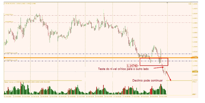 Aparentemente, se houver uma fuga de 1.1540, será impulsivo. Quanto maior a consolidação nesse intervalo, mais forte será o movimento descendente de preços.