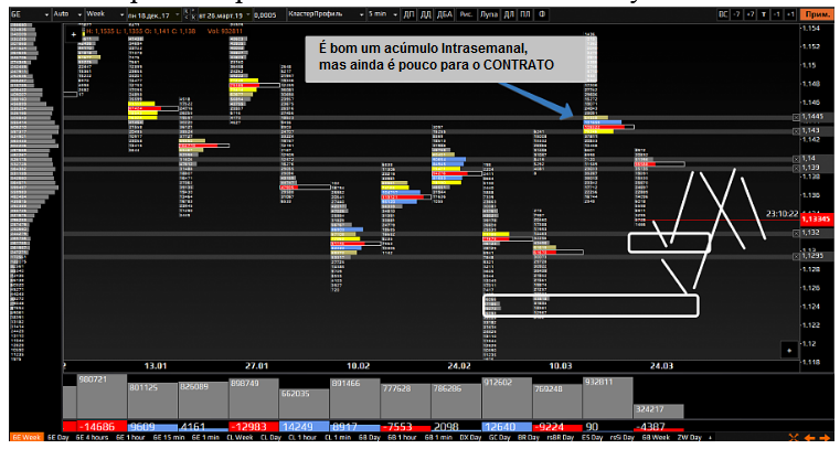 O intervalo entre eles é de 38 pontos. Quando chegarmos a um desses níveis, a direção será confirmada. Quanto menor o intervalo, maior a probabilidade de fazermos extensões, ou seja, romper os dois níveis. Mas isso depende da tendência do mercado, muitas vezes mostra a força do mercado. Como na sexta-feira, quando houve a quebra de 1,1246, a tendência de alta foi confirmada, mas permanecemos no mesmo nível. Este é um sinal da fraqueza dos touros.