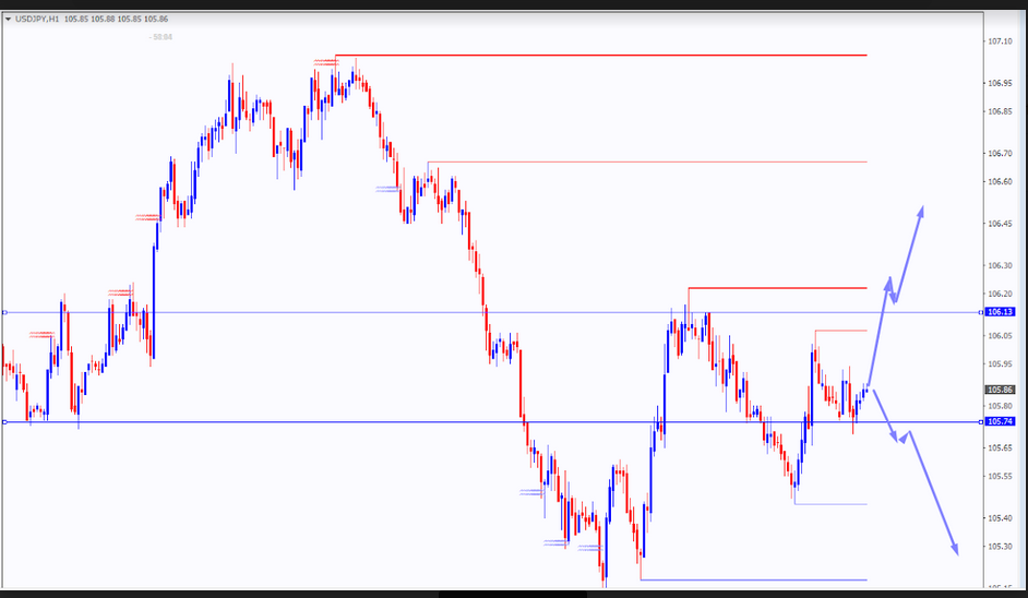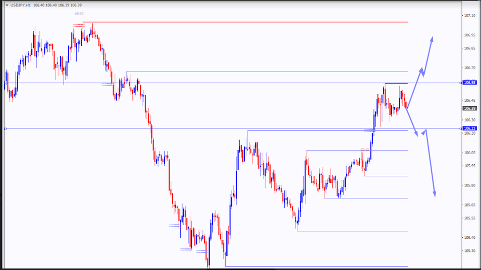Agora vamos dar uma olhada no gráfico dólar/iene e definir alguns cenários possíveis do movimento de preços para hoje.