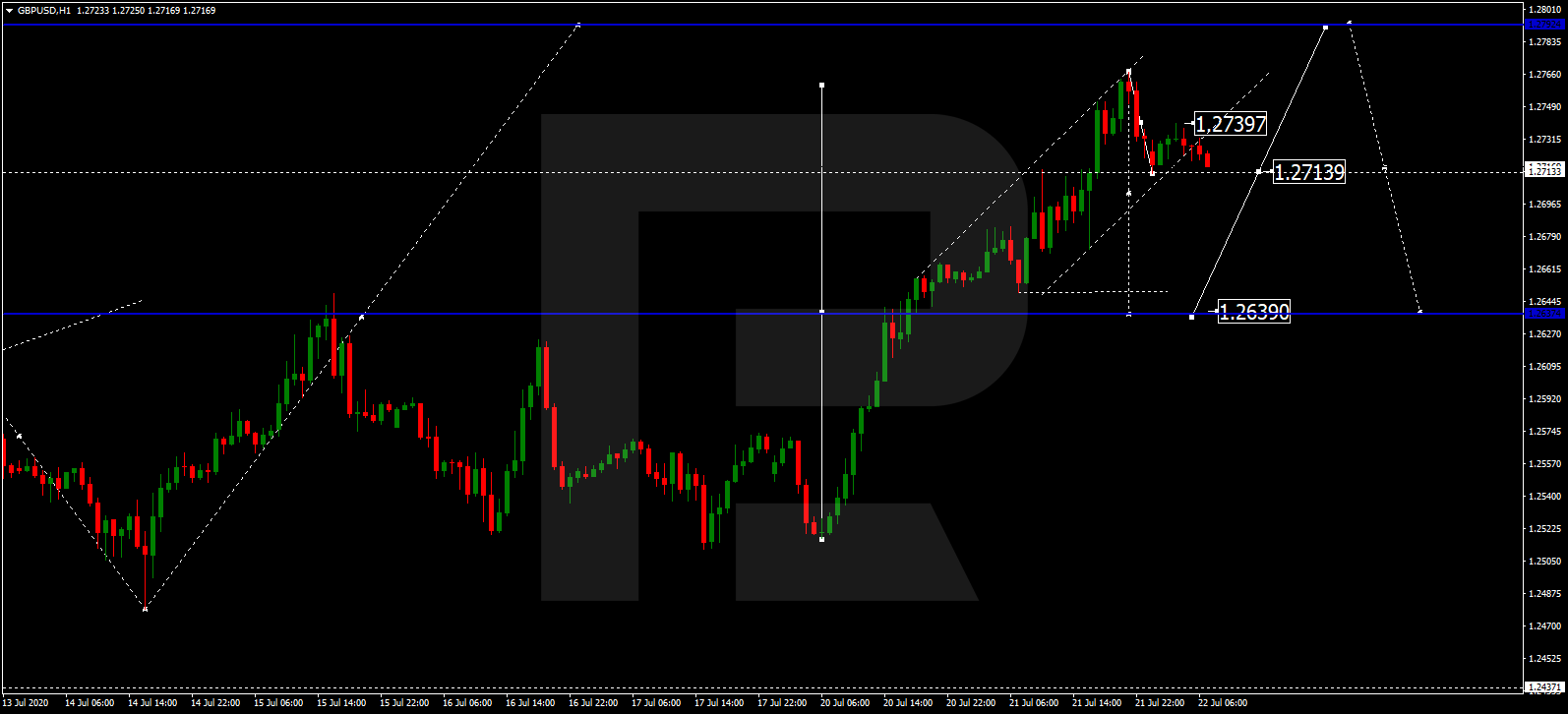 Depois de completar a onda ascendente em 1.1370 e a estrutura descendente em 1.1300, o EURUSD formou a faixa de consolidação em torno do último nível e quebrou-a na desvantagem. Possivelmente, o par pode formar uma nova estrutura descendente para atingir 1.1250 e, em seguida, retomar a negociação para cima com o alvo em 1.1300.