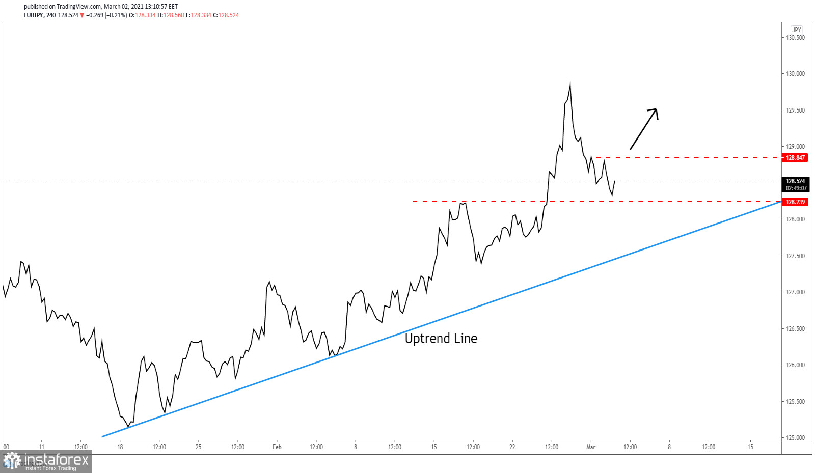 USD/JPY: O rápido aumento dos rendimentos do Tesouro dos EUA forçou o iene japonês a procurar um lugar para se esconder. O presidente do Federal Reserve dos EUA, Jerome Powell, não quis expressar preocupação com a recuperação das taxas de mercado da dívida dos EUA; A maioria do Senado aceita o projeto de estímulo fiscal de US $1,9 trilhão de Joe Biden; e a relutância da OPEP em aumentar a produção inflacionou os preços do petróleo e as expectativas de inflação.