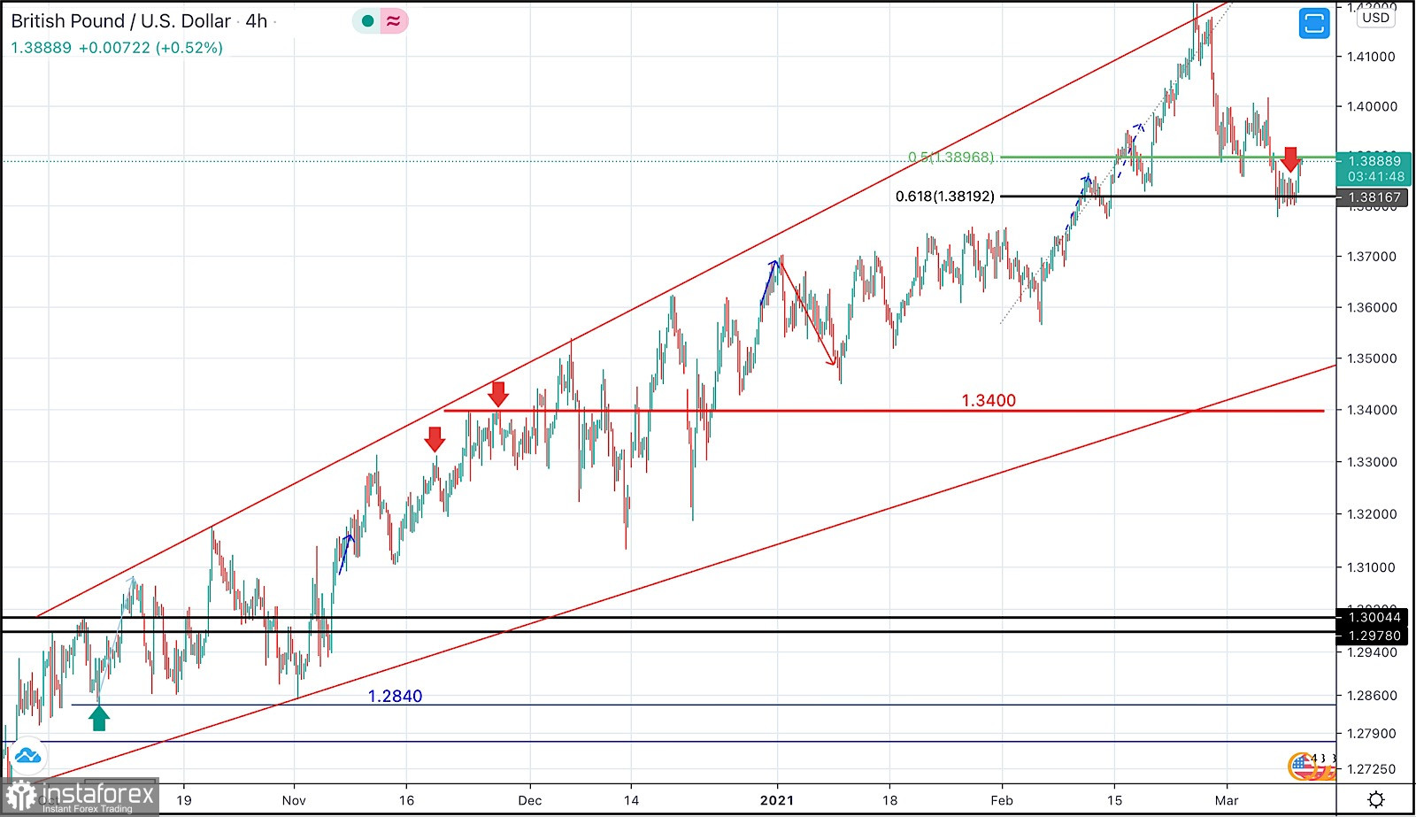 Na sexta-feira, os investidores continuaram a recuperar os resultados da reunião do BCE em março, que ocorreu no dia anterior. O regulador manteve as taxas de juros inalteradas, mas anunciou sua intenção de aumentar significativamente o ritmo de recompra de ativos no próximo trimestre. Esta é uma notícia negativa para o euro, uma vez que o BCE reagiu muito rapidamente ao crescimento dos rendimentos das obrigações na UE. Os participantes do mercado estão agora aguardando medidas semelhantes do Fed, considerando este o desenvolvimento mais lógico.