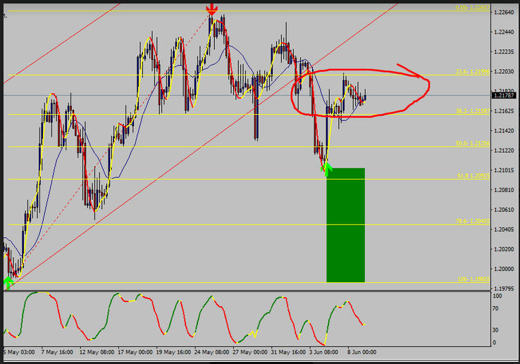 Podemos ver que em 1H, EUR / USD precisa de um zigue-zague para cima. Isso não é bom para nós porque o preço pode retornar para cima a qualquer momento para testar a meta superior.